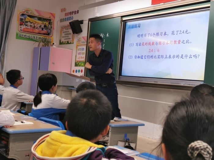 張立超老師巡視校園整體教學(xué)情況后,聆聽了六(2)班莫與談老師執(zhí)教的一節(jié)數(shù)學(xué)課《比的意義》。莫老師在充分做好學(xué)生前測的基礎(chǔ)上,以SOLO分類理論指導(dǎo)備課,制定了適宜的教學(xué)目標(biāo),精心設(shè)計了教學(xué)過程,整節(jié)課思路清晰,學(xué)生積極性高,課堂生成亮點紛呈,突出學(xué)生數(shù)學(xué)思維能力的發(fā)展。