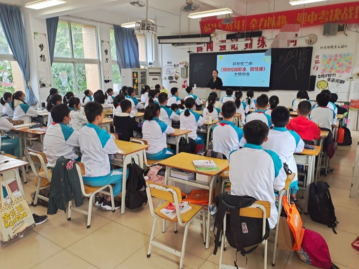 隨后,班主任們就如何“預(yù)防校園欺凌”主題班會課上,就如何辨別校園欺凌與暴力行為,與學(xué)生列舉,通過“自衛(wèi)自保大智慧”、“和諧共處是正道”系列篇章,與學(xué)生就“預(yù)防校園欺凌”達成一致共識。