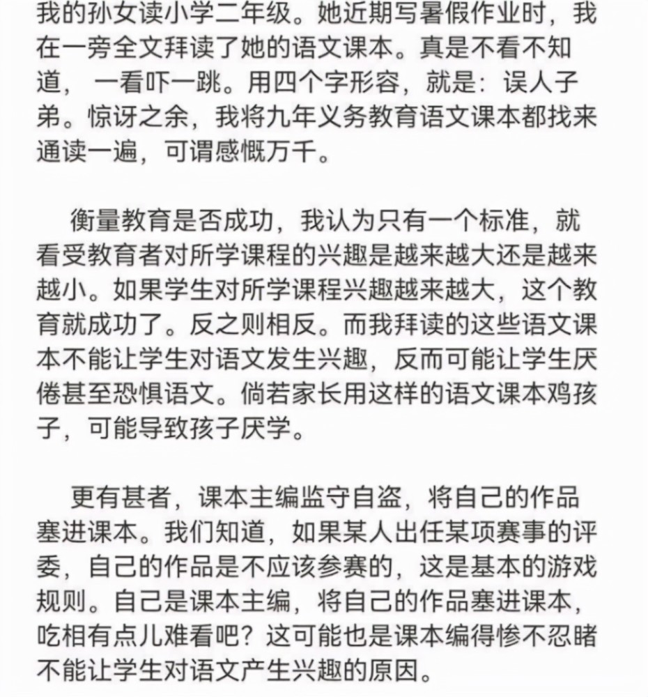 鄭淵潔怒批語文教材,晦澀難懂讓學(xué)生沒興趣,家長表示十分贊同