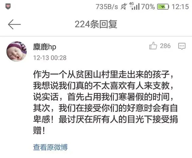 所以,以“獻(xiàn)愛(ài)心”的方式剝奪支教地區(qū)學(xué)生的生活,入侵他們的世界,是不是也得尊重對(duì)方的心愿?更不要說(shuō)有些行為就是讓支教這片教育凈土沾染上資本的惡臭。