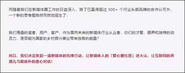 今年4月份,龍晶睛的善吟共益發(fā)起了一項(xiàng)短期“愛(ài)心暑托班”的活動(dòng),在微信公眾號(hào)中發(fā)起了一篇招募推文,名叫《新媒體人!和我們一起去支教!》。