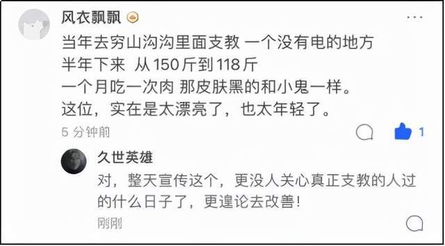 以上說(shuō)的這些支教老師,沒(méi)有一個(gè)是像龍晶睛那樣,每年下鄉(xiāng)幾天,就把“十年支教”掛在嘴邊的;也沒(méi)有一個(gè)像龍晶睛那樣,聲稱做了十年支教,依然天天貌美如花妝不帶花的;更沒(méi)有一個(gè)像龍晶睛那樣,以支教的名義,去賺流量割韭菜的。