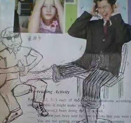 課本涂鴉雖然很有趣,但是學(xué)生也要在適當(dāng)?shù)臅r(shí)間做適當(dāng)?shù)氖虑?,畢竟,即使走藝術(shù)這一條道路也需要文化知識(shí)過關(guān)。所以,在課堂上還是需要認(rèn)真聽老師講課,適當(dāng)進(jìn)行興趣也是可以的,但是不能影響學(xué)習(xí),這能讓家長和老師安心些。同時(shí)也不能過分惡改一些嚴(yán)肅的歷史人物,要注意創(chuàng)作的尺度。創(chuàng)作也是需要底線的支持的。