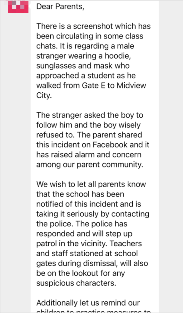 謝天謝地,孩子沒有跟他走,而是轉(zhuǎn)身向巴士站等車的人求助。這位家長(zhǎng)希望大家把消息趕緊擴(kuò)散出去,提醒孩子們警惕!