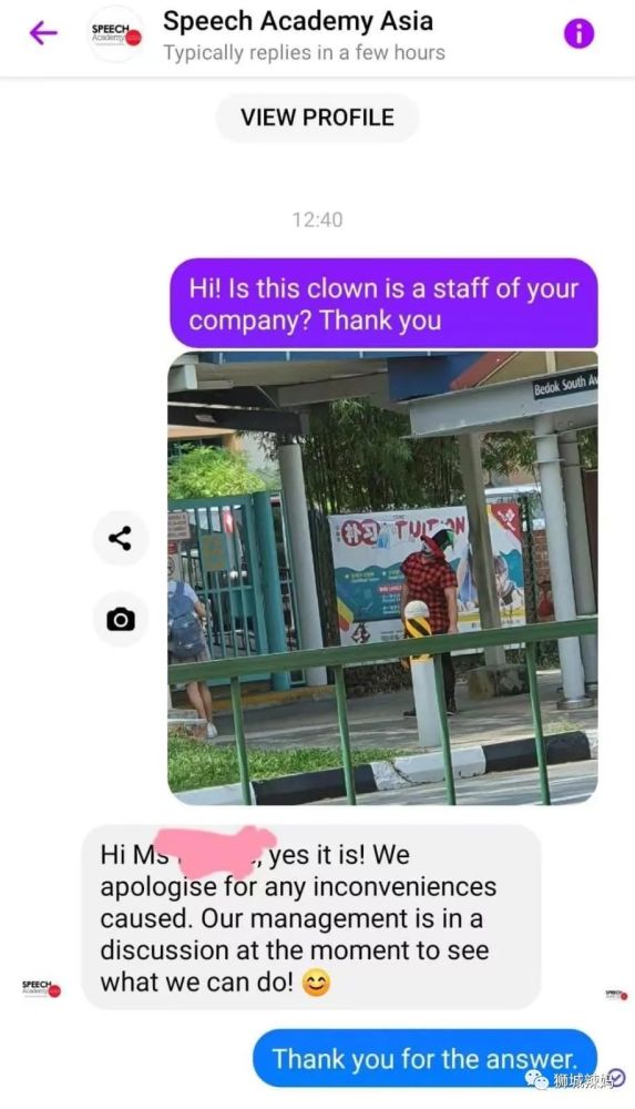 目前警方已證實(shí),小丑是Speech Academy Asia教育中心的工作人員。
