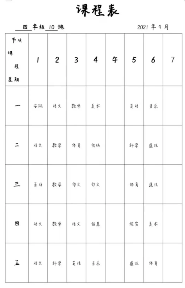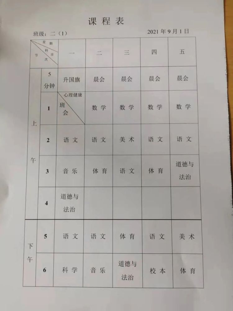 開學(xué)了,我看了眼孩子的新課表(北京地區(qū)二年級)。