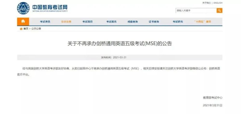不過就在今年3月,教育部考試中心官網(wǎng)中國教育考試網(wǎng)發(fā)布公告稱:教育部考試中心不再承辦劍橋通用英語五級考試(MSE),即家長所熟悉的KET、PET(下稱KP考試)等考試。