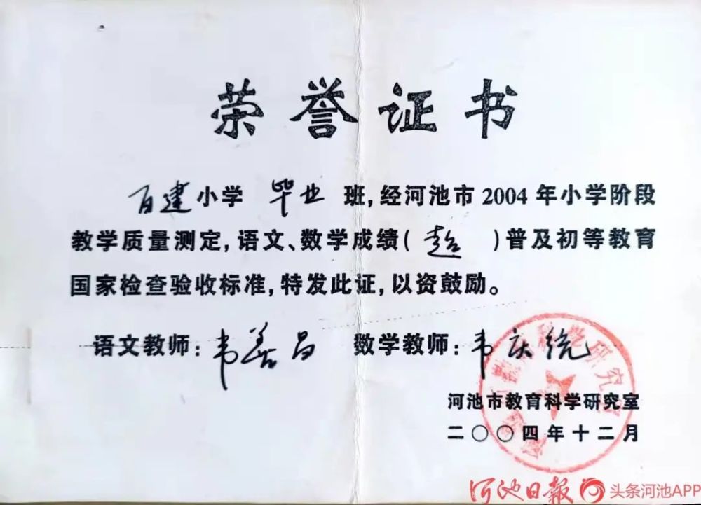 1996年9月,該校點(diǎn)停辦,韋善昌先后調(diào)到百建小學(xué)、坡拉小學(xué)任教。