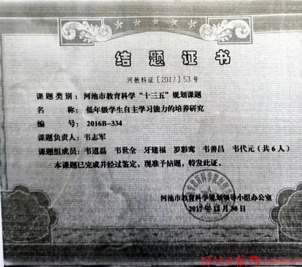 多年來,韋善昌參與多項(xiàng)科研獲得順利結(jié)題,并被推廣使用。2017年至2021年6月,他完成市“十二五”教育科學(xué)規(guī)劃重點(diǎn)課題中小學(xué)生學(xué)習(xí)方法研究與實(shí)踐之子課題《低年級學(xué)生自主學(xué)習(xí)能力的培養(yǎng)研究》《小學(xué)中高年級學(xué)生數(shù)學(xué)計(jì)算能力的培養(yǎng)》等4個(gè),完成效果良好,并被推廣使用。2021年6月,發(fā)表論文《試探小學(xué)語文教學(xué)與德育的融合路徑》榮獲國家級優(yōu)秀論文一等獎(jiǎng)。
