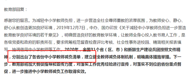 教師群體作為食物鏈最低端的存在不得不向教育部尋求幫助,畢竟憑借他們自己的力量真是難以抵抗,所以有人就在網(wǎng)絡(luò)上向教育部進(jìn)行提問(wèn)。并且教育部在收到提問(wèn)的第一時(shí)間,回復(fù)。
