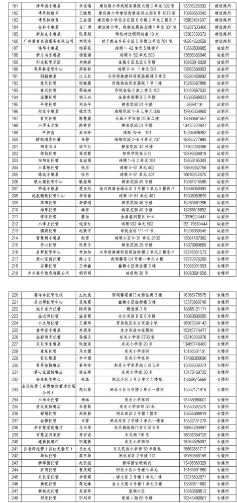 為進一步規(guī)范校外托管機構(gòu)餐飲服務(wù)經(jīng)營行為,東昌府區(qū)市場監(jiān)督管理局對全區(qū)校外托管機構(gòu)進行了全面的摸底調(diào)查,按照提升一批、規(guī)范一批、取締一批的工作原則,進行了整治提升。經(jīng)過材料審查、現(xiàn)場核查,對符合條件的校外托管機構(gòu)進行備案登記。截至目前,東昌府區(qū)共有345家校外托管機構(gòu)登記備案,現(xiàn)予以公示。