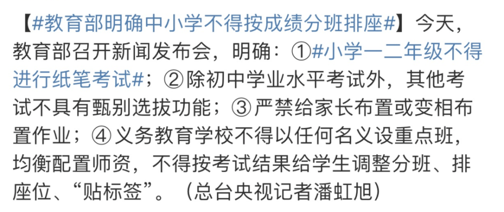 其實教育部既然提出了這項決策,那就說明禁止低年級學生考試以及布置作業(yè),本身是符合實際要求的。