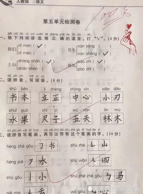 一年級(jí)的班級(jí)中,90分兒以上僅僅達(dá)到及格線,而考100分的孩子非常多,難不成一年級(jí)的孩子智力都不一般?拿過一年級(jí)的試卷就明白了,題目太簡(jiǎn)單。一二年級(jí)的孩子剛上學(xué),教材和題目都不會(huì)特別特別難,以免打擊孩子的自信心,而老師的教學(xué)速度也不快,題目都是直來(lái)直去的,一點(diǎn)彎也不拐,考滿分很容易。
