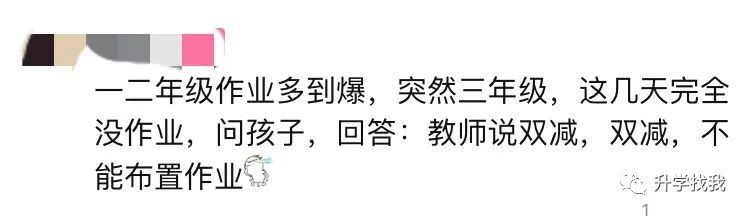 有三年級(jí)的家長(zhǎng)也在說(shuō),“一、二年級(jí)作業(yè)多到爆,沒(méi)想到三年級(jí)完全沒(méi)作業(yè)了”。