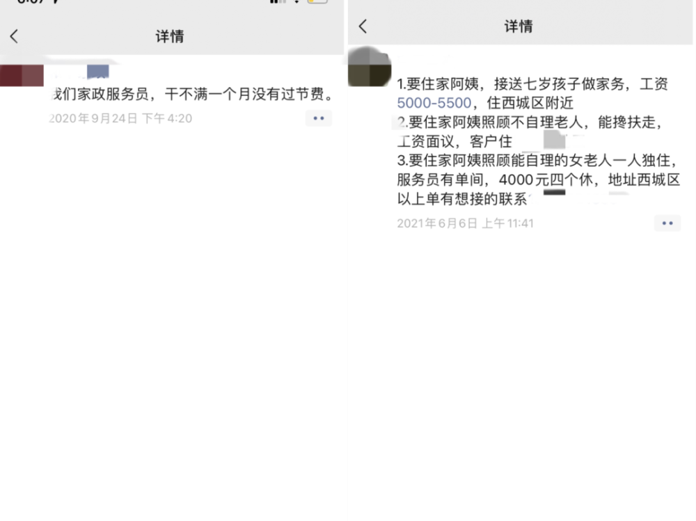 而在另一個(gè)分類信息網(wǎng)58同城上,家政業(yè)務(wù)則更加繁雜和細(xì)分。接送孩子是一項(xiàng)摻雜在鐘點(diǎn)工業(yè)務(wù)中的一項(xiàng),其中還包括孩子陪護(hù)、早教啟蒙等服務(wù),價(jià)格也是2000元-4000元不等。