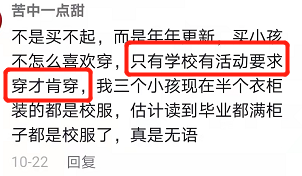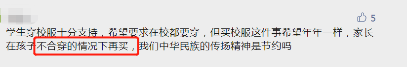 其實(shí)很多的家長并不是反對學(xué)生穿校服,而是希望校服的款式不用年年換,在孩子不合穿的情況下再買。