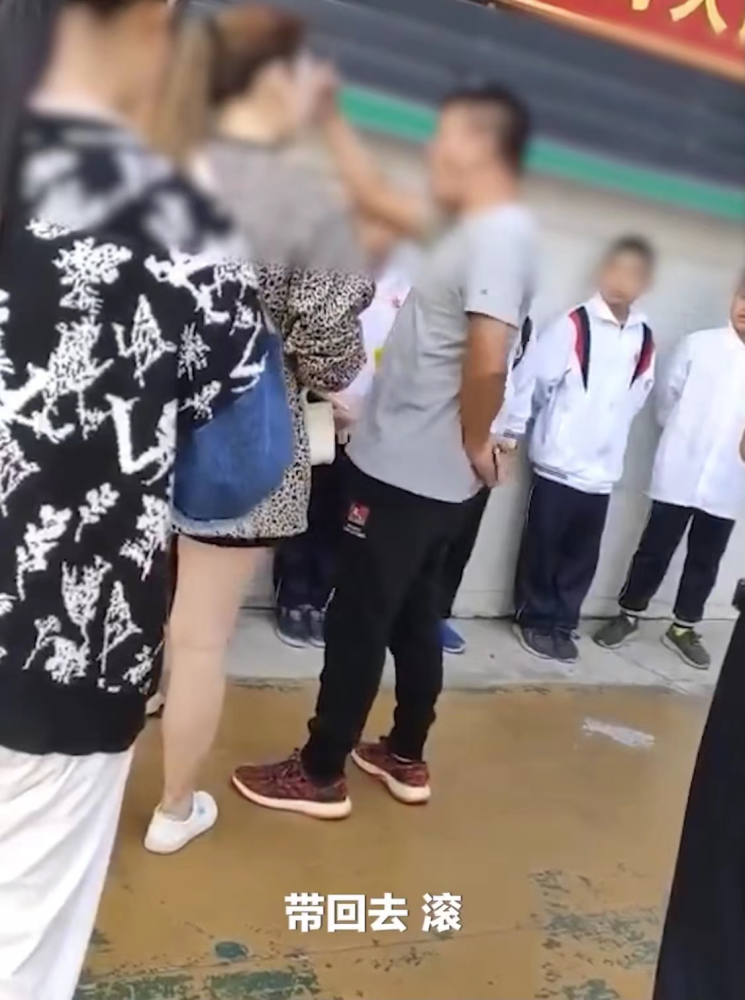 網(wǎng)傳視頻中,幾名學(xué)生身穿白色校服靠墻站成一排,疑似涉事老師胸前掛著一只黃色哨子,對(duì)家長(zhǎng)大聲說(shuō):“怎么了,我不能罵你?。 薄皫Щ厝?,滾!”