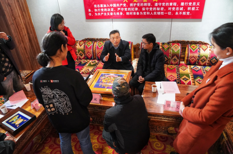 會上,廣東省第九批援藏工作隊魯朗工作組蔡畯就進藏以來魯朗組團工作作簡要匯報,林芝市魯朗景區(qū)管理委員會文化旅游促進科科長凌源儷對魯朗旅游資源進行了推介,并對旅游優(yōu)惠政策進行了介紹。廣東畫中畫藝術文化傳播有限公司總經(jīng)理李東向大家介紹了“藝起來,繪未來”公益非遺藝術培訓項目(“廣府金繡”唐卡手工藝術品),并現(xiàn)場展示了利用“廣府金繡”工藝制作的美術作品。林芝市人大代表、工商聯(lián)副主席,西藏林芝智慧旅游發(fā)展有限公司董事長秦磊對魯朗創(chuàng)客空間進行了介紹。隨后,各單位就兩地旅游項目合作及非遺項目落地魯朗進行了熱烈充實的探討。