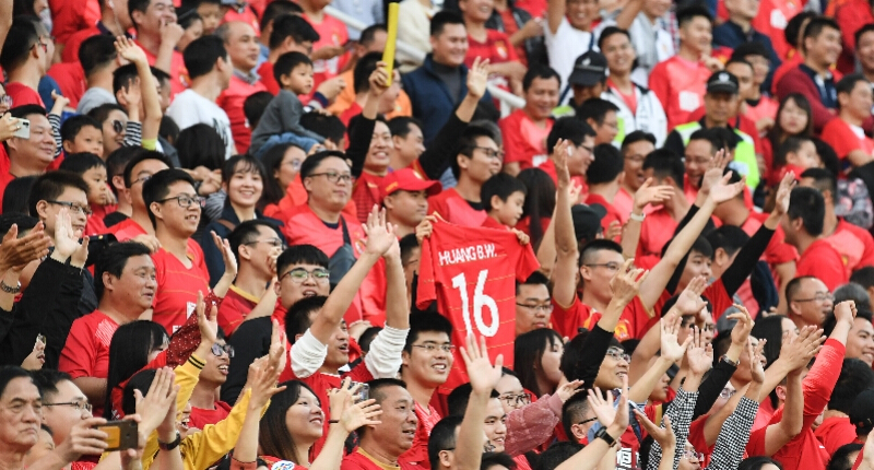 2019年12月1日,球迷在廣州天河體育中心慶祝恒大奪得中超第八冠。 新華社發(fā)