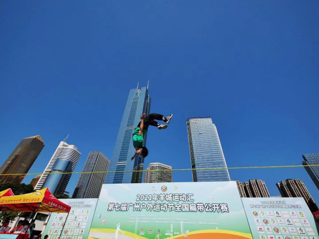 11月13日,2021年羊城運動匯·第七屆廣州戶外運動節(jié)全國扁帶公開賽在廣州天河體育中心田徑副場火熱舉行。來自各地的扁帶高手齊聚天體,展開激烈爭奪,為市民呈現了一場精彩絕倫的“空中技巧”表演。