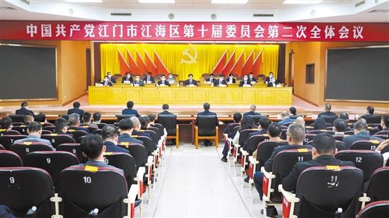 江門(mén)日?qǐng)?bào)訊 (記者/李雨溪) 11月4日,中共江門(mén)市江海區(qū)第十屆委員會(huì)第二次全體會(huì)議召開(kāi)。會(huì)議以習(xí)近平新時(shí)代中國(guó)特色社會(huì)主義思想為指導(dǎo),深入貫徹落實(shí)習(xí)近平總書(shū)記“七一”重要講話(huà)和對(duì)廣東系列重要講話(huà)、重要指示批示特別是對(duì)橫琴、前海開(kāi)發(fā)開(kāi)放的重要論述精神,認(rèn)真貫徹落實(shí)黨中央、國(guó)務(wù)院印發(fā)的《橫琴粵澳深度合作區(qū)建設(shè)總體方案》《全面深化前海深港現(xiàn)代服務(wù)業(yè)合作區(qū)改革開(kāi)放方案》,全面落實(shí)省委十二屆十四次全會(huì)和市委十三屆十六次全會(huì)精神,就對(duì)接支持服務(wù)兩個(gè)合作區(qū)建設(shè)、做好江海區(qū)當(dāng)前和今后一個(gè)時(shí)期工作進(jìn)行部署,組織動(dòng)員全區(qū)上下振奮精神、搶抓機(jī)遇、擔(dān)當(dāng)作為,奮力推動(dòng)江海高質(zhì)量發(fā)展,為江門(mén)打造珠江西岸新增長(zhǎng)極和沿海經(jīng)濟(jì)帶上的江海門(mén)戶(hù)貢獻(xiàn)力量。江海區(qū)委書(shū)記聶加偉代表江海區(qū)委常委會(huì)作報(bào)告,江海區(qū)委副書(shū)記、區(qū)長(zhǎng)鄭丹輝就經(jīng)濟(jì)工作作專(zhuān)題講話(huà)。