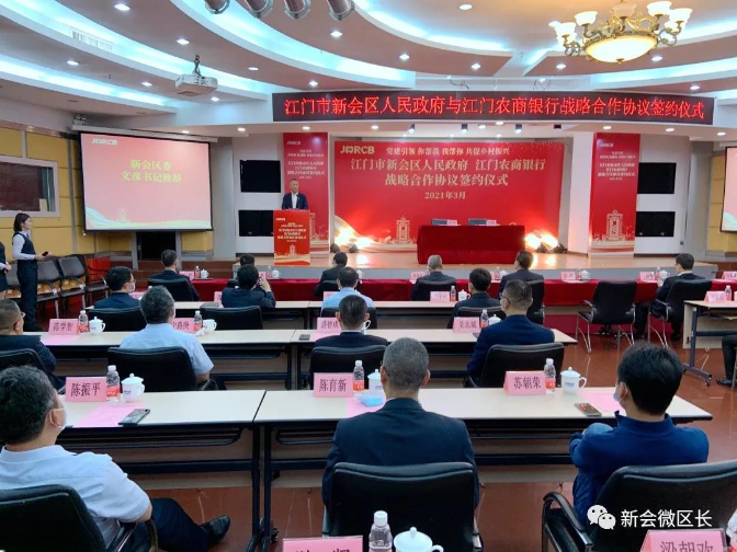 3月12日,新會區(qū)人民政府與江門農(nóng)商銀行簽署“黨建引領(lǐng),你幫我、我?guī)湍?,共促鄉(xiāng)村振興”戰(zhàn)略合作協(xié)議。