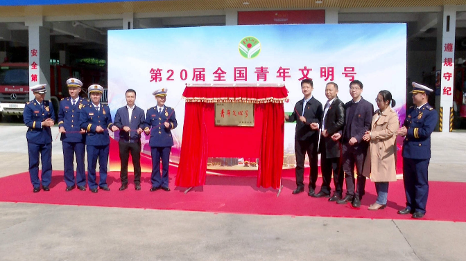儀式上,有關(guān)領(lǐng)導(dǎo)嘉賓共同為今古洲消防救援站“青年文明號”揭牌。