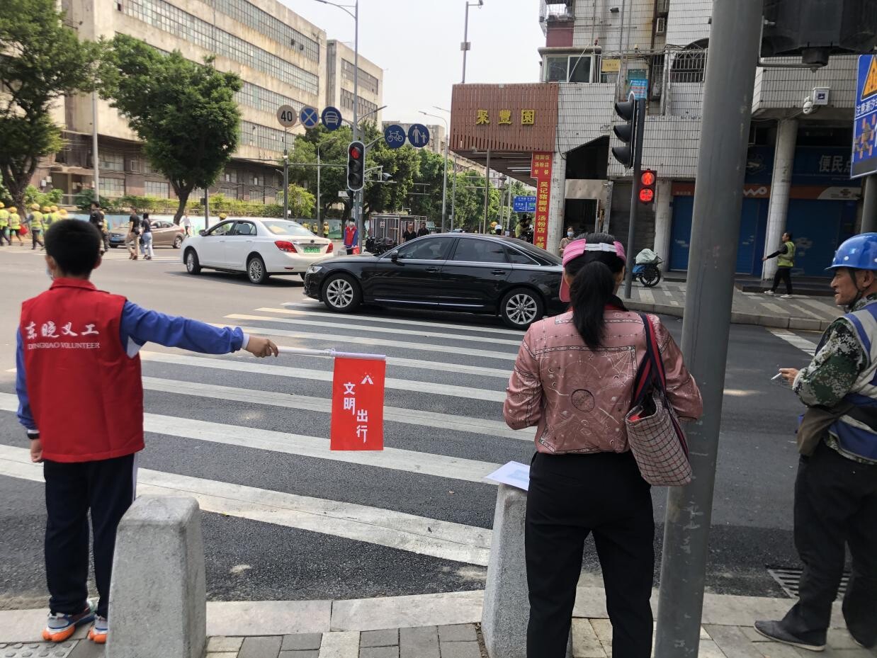 本次活動(dòng)共設(shè)8組,含4個(gè)路口的交通勸導(dǎo)與4條馬路的道路清潔與文明勸導(dǎo)?;顒?dòng)現(xiàn)場(chǎng),小志愿者們個(gè)個(gè)精神抖擻,有序地分成了8組。簡(jiǎn)單的志愿服務(wù)與活動(dòng)注意事項(xiàng)培訓(xùn)與講解后,大家穿戴整齊,領(lǐng)取好相關(guān)物資后,在“爭(zhēng)做中華傳統(tǒng)美德傳承者”的口號(hào)中依次前往指定的區(qū)域開(kāi)展志愿活動(dòng)。