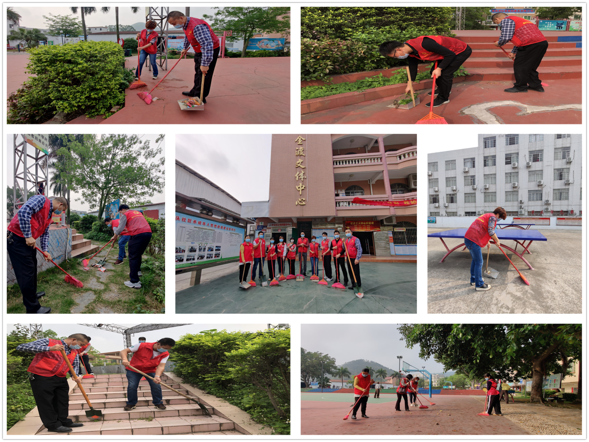 (圖為局志愿者對社區(qū)文體廣場進行環(huán)境衛(wèi)生整治)