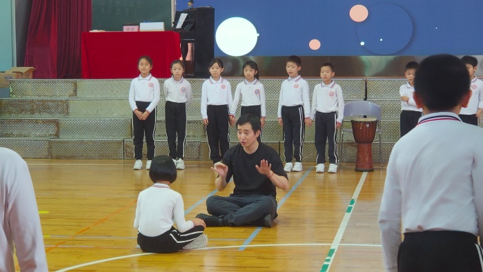 第二日,謝呈博士用東區(qū)水云軒小學(xué)三(4)班的同學(xué)上了一天的示范課。用體態(tài)律動(dòng)與孩子一起感受音樂以及問好;運(yùn)用籃球進(jìn)行歌曲旋律的雙人互動(dòng);一曲多用,通過踏步、演唱、拍手進(jìn)一步鞏固歌曲旋律的節(jié)奏;雙人互動(dòng),一人拍穩(wěn)定拍,一人拍歌曲節(jié)奏;三拍子重拍拍球練習(xí)、三拍子雙人傳球練習(xí)、三拍子體態(tài)律動(dòng)練習(xí);跟隨音樂變化不同的體態(tài)律動(dòng),運(yùn)用氣球來(lái)跟隨音樂作出變化。謝博士通過固定的音樂信號(hào)建立了穩(wěn)定高效的教學(xué)秩序,有效培養(yǎng)了學(xué)生的聆聽習(xí)慣,使學(xué)生們能及時(shí)集中注意力并作出對(duì)應(yīng)的反應(yīng),大大激發(fā)學(xué)生參與音樂課堂的熱情。