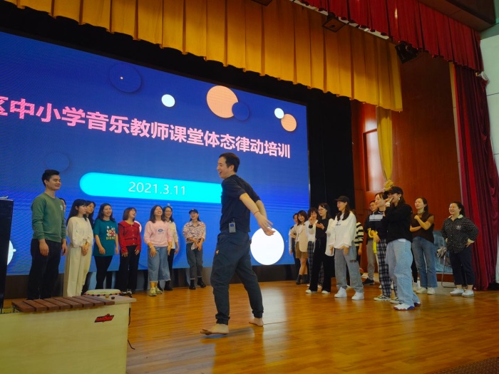 為了提高東區(qū)中小學(xué)音樂教師教學(xué)能力,豐富課堂形式,優(yōu)化教學(xué)手段,在東區(qū)教育事務(wù)指導(dǎo)中心趙海賓老師的大力支持下,我們邀請(qǐng)到了北京舞蹈學(xué)院創(chuàng)意學(xué)院青年教師謝呈博士為老師們展開了為期三天的“東區(qū)中小學(xué)音樂教師課堂體態(tài)律動(dòng)培訓(xùn)”。