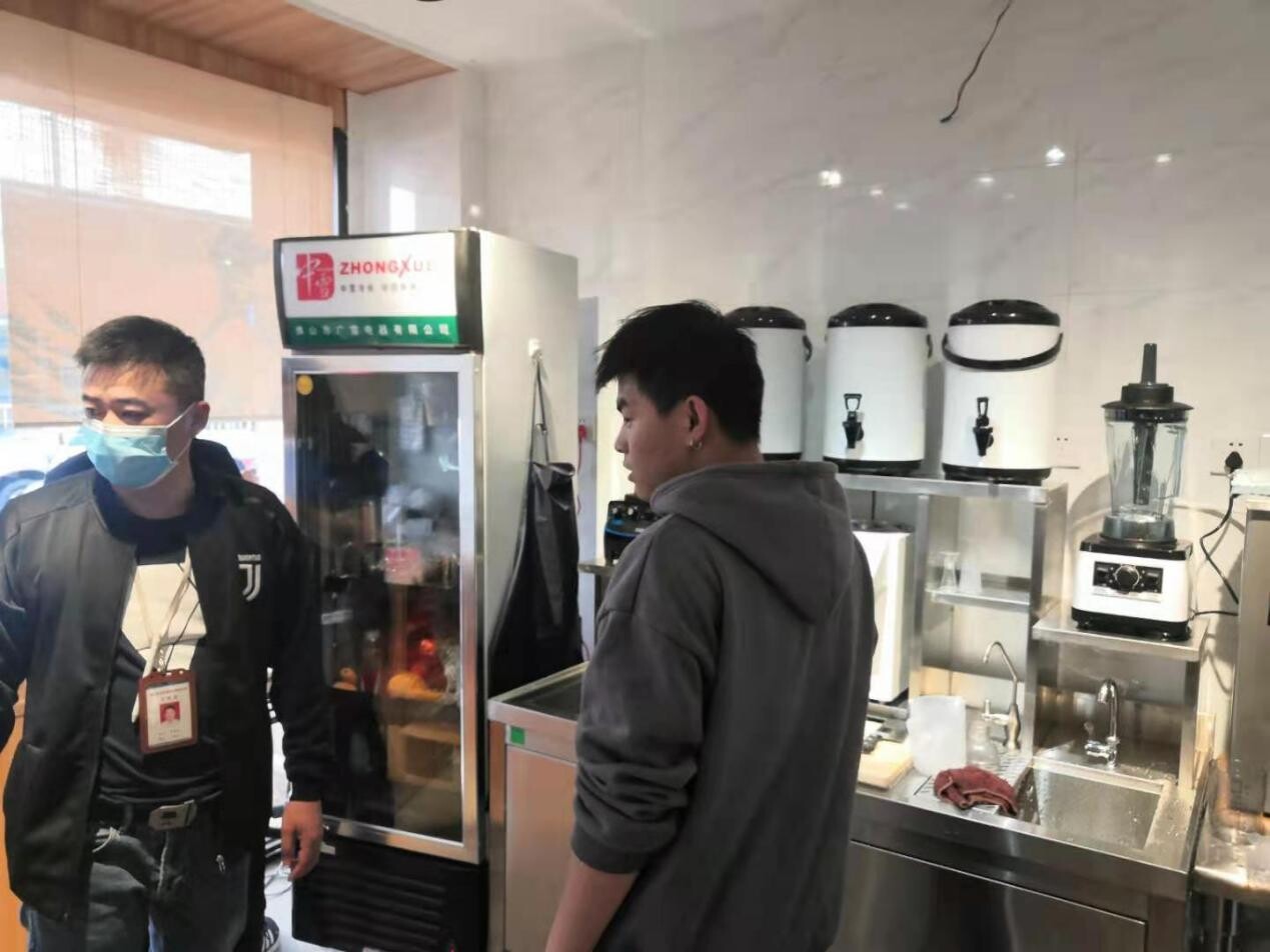 工作人員查看餐飲企業(yè)現(xiàn)場