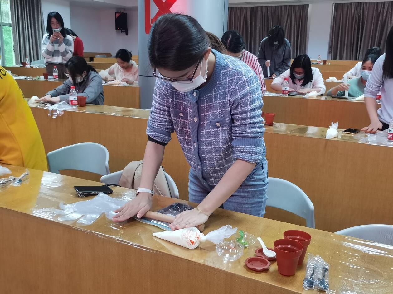 此次活動邀請了專業(yè)面點(diǎn)師現(xiàn)場授課,制作內(nèi)容為盆栽蛋糕?;顒娱_始后,面點(diǎn)師為大家詳細(xì)講解了配料、制作步驟、制作要領(lǐng)和烘焙有關(guān)知識,并進(jìn)行操作演示,女職工們認(rèn)真觀摩學(xué)習(xí)。
