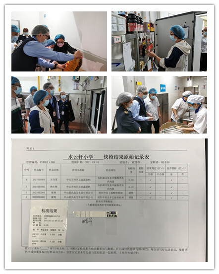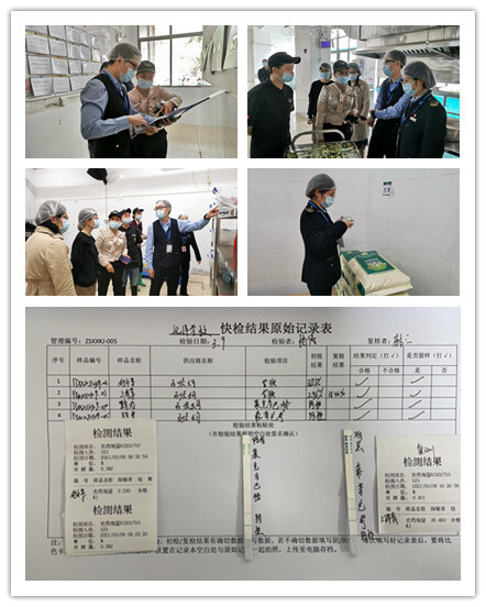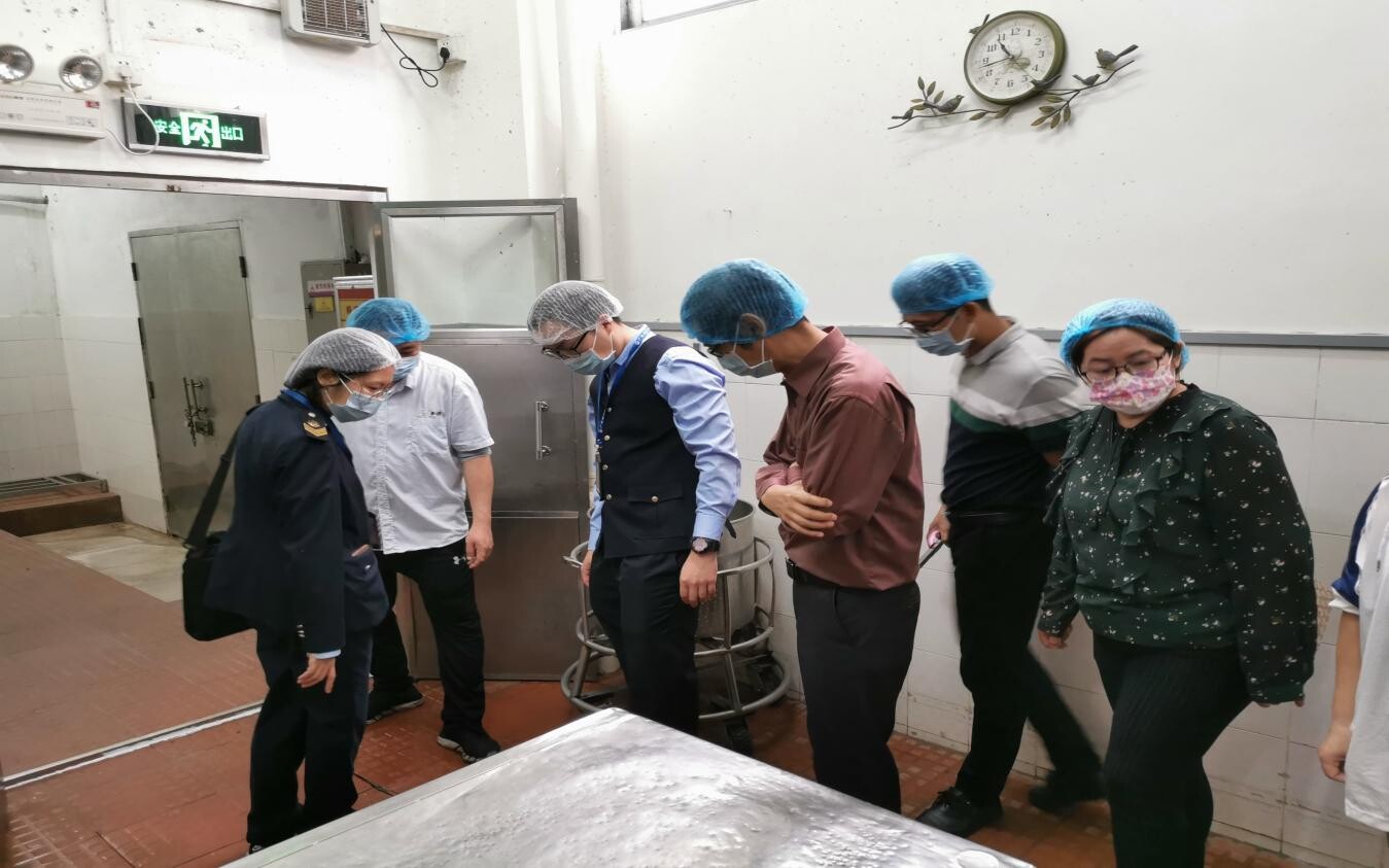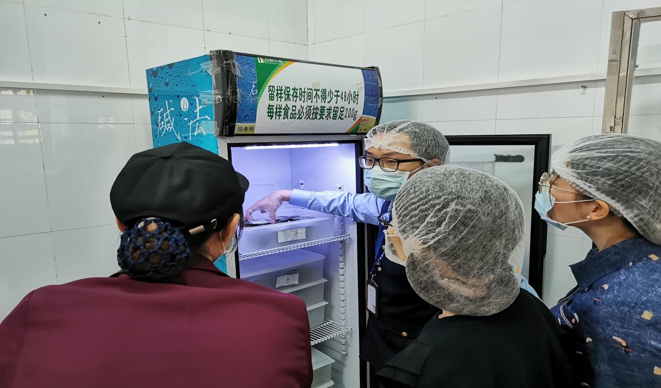 經(jīng)檢查,兩所學校整體食品安全狀況良好,食品加工烹調流程布局基本符合衛(wèi)生要求,學??鞕z室能夠做到每日對食材進行檢測,所使用的大米、食用油及調味料等均能提供對應的檢驗合格證明,餐具的清洗、消毒和保潔工作落實到位,人員的健康管理和場所消毒有完善記錄,食堂員工在工作時能做到正確佩戴口罩,分餐時規(guī)范佩戴手套,倉庫中的食品能夠分類分架、離墻離地存放,貯存溫度符合要求。