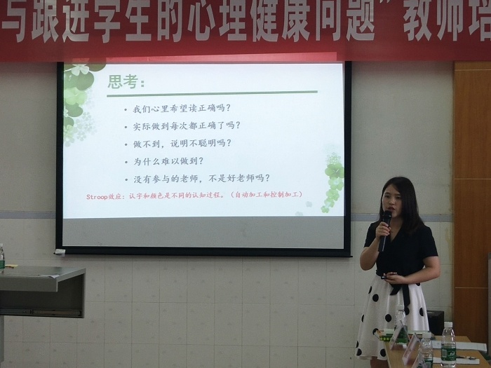 第一部分由西南大學(xué)心理學(xué)碩士、朗晴小學(xué)專職心理教師、朗晴小學(xué)德育主任雷小云老師作《如何發(fā)現(xiàn)與跟進(jìn)學(xué)生心理健康問(wèn)題》專題講座,雷老師通過(guò)分析“2019年朗晴小學(xué)學(xué)生心理異常”的數(shù)據(jù),得出學(xué)生心理異??赡軡摲谏磉叺慕Y(jié)論,教師需要有一雙發(fā)現(xiàn)學(xué)生心理異常的眼睛,做到及時(shí)發(fā)現(xiàn)問(wèn)題及時(shí)處理。教師們還學(xué)習(xí)了“小學(xué)生常見的心理行為問(wèn)題”、“小學(xué)生心理行為問(wèn)題的成因”和“應(yīng)對(duì)小學(xué)生心理行為問(wèn)題的策略”,這為教師在處理小學(xué)生心理異常時(shí)提供良好的理論依據(jù)與應(yīng)對(duì)技巧。