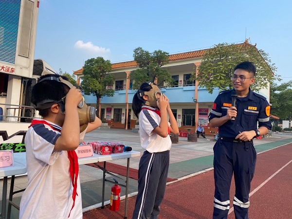 接下來,學校邀請廣東省595安全科技有限公司培訓人員進行防空防災體驗式宣傳活動,培訓人員邊講解邊指導學生體驗了消防帳篷逃生、手搖報警器操作、防毒面具試戴、模擬觸電等場景。在這種互動式體驗和宣講下,學生們興致盎然,積極參與活動,既獲得了安全知識教育,又獲得了應急操作經(jīng)驗。消防演練是眾多演練中必不可少的環(huán)節(jié),培訓人員講解和示范了滅火器的使用后,部分師生按照事先安排,現(xiàn)場展示了滅火器滅火操作。