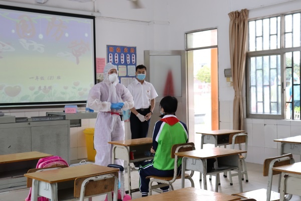 校園安全無小事,在新型冠狀病毒流行的今天,為了進一步保障校園師生生命安全和身體健康,5月9日下午,阜沙鎮(zhèn)羅松小學舉行了校園新冠肺炎疫情防控應急演練,全體教職員工、行政參加了演練。演練中,阜沙鎮(zhèn)黨委副書記孫海卿、文教衛(wèi)計局局長黃桂生、社區(qū)衛(wèi)生服務中心主任黃極信、教育事務指導中心主任徐瑞欽出席,并全程觀摩了演練。