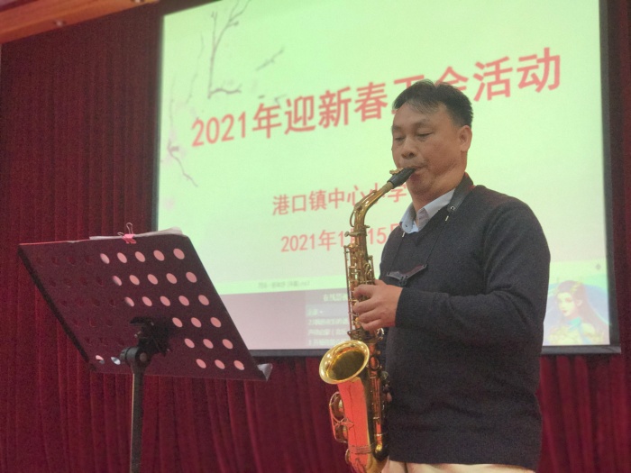 陽(yáng)光燦爛,那是新年絢麗的色彩,悠揚(yáng)的薩克斯風(fēng),是新年動(dòng)人的旋律,羅福林老師為大家演奏《愛(ài)拼才會(huì)贏》,美妙的音樂(lè),讓大家感受到了春的氣息,充滿新的動(dòng)力。最后,由范苑芳老師指揮,黃嘉儀、高子晴兩位小朋友領(lǐng)唱,全體老師合唱《新年好》,大家相聚一起,敞開(kāi)心扉,釋放激情,一起高歌,迎接新年。