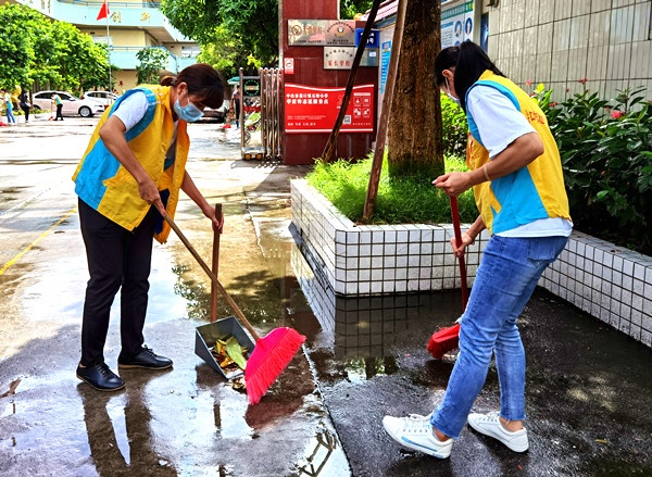 培訓(xùn)結(jié)束后,志愿者們手持掃帚、小鏟子等工具,在雨中有條不紊地分頭行動(dòng)起來(lái)。他們相互配合,集中對(duì)校園及門(mén)前路段進(jìn)行大清掃,改善學(xué)校及周邊環(huán)境衛(wèi)生。盡管雨勢(shì)漸大,志愿者們個(gè)個(gè)熱情高漲,干勁十足,在大家的共同努力下,校園面貌煥然一新。