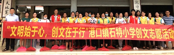 為助力中山市文明城市創(chuàng)建,發(fā)揚(yáng)“奉獻(xiàn)、友愛(ài)、互助、進(jìn)步”的志愿者精神,推進(jìn)家校合作的新高度。8月2日上午,在學(xué)校德育處的組織安排下,三、四年級(jí)30名家長(zhǎng)志愿者到校參與石特小學(xué)創(chuàng)文志愿服務(wù)活動(dòng)。