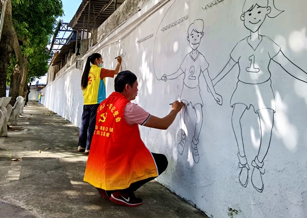 上午8:30,一群紅色、黃色的身影在學(xué)校門口集結(jié)。隨后,他們兵分三組,第一組美化校園墻壁,為校園增添一道亮麗的景色。第二組則清潔校園以及附近衛(wèi)生,大家積極發(fā)揮奉獻(xiàn)精神,不怕臟、不怕累,干勁十足,密切配合,動(dòng)手撿紙屑、倒垃圾、清掃地面落葉......不放過任何一處死角。第三組到學(xué)校附近的河涌地帶,開展防溺水河涌安全巡查工作,巡查是否有學(xué)生野泳、釣魚等行為,避免學(xué)生到河涌附近玩?;蛴斡径l(fā)生溺水事故,為學(xué)生的暑假安全保駕護(hù)航。