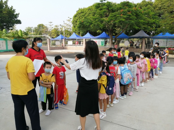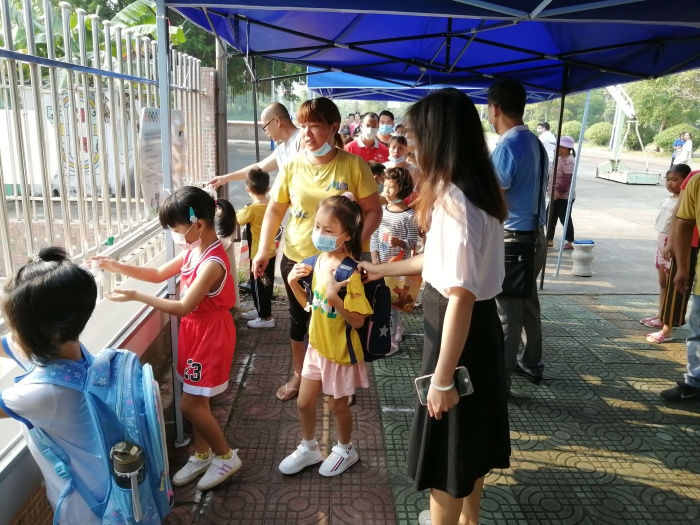 為確保新生培訓(xùn)工作有序高效地進(jìn)行,中南小學(xué)在前期就進(jìn)行了周密的部署,中南小學(xué)的教職工們個(gè)個(gè)精神飽滿(mǎn),有序地忙碌著自己的工作,為迎接新生報(bào)到做好充分準(zhǔn)備。29日上午,老師們?cè)缭鐏?lái)到學(xué)校,靜待孩子們的到來(lái)。在入校前,老師引導(dǎo)孩子們洗好手后,領(lǐng)著學(xué)生有序地走進(jìn)教室。