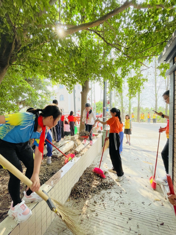 活動(dòng)伊始,每位參與成員拿著清潔工具來(lái)到下南社區(qū)集中點(diǎn),學(xué)校梁廣平主任進(jìn)行分組。隨后,各組開(kāi)始對(duì)指定范圍內(nèi)進(jìn)行清理,有的拿掃把、有的拿垃圾鏟、有的拖垃圾桶,大家相互配合、相互合作,把區(qū)域內(nèi)的垃圾、亂堆放的雜物、落葉等等進(jìn)行了衛(wèi)生清理,通過(guò)一小時(shí)左右的勞動(dòng),所劃定的區(qū)域被大家清理得干干凈凈?;顒?dòng)中,孩子們忙得不亦樂(lè)乎,不嫌臟不怕累,雖然滿頭大汗,但臉上卻掛著甜甜的笑容。