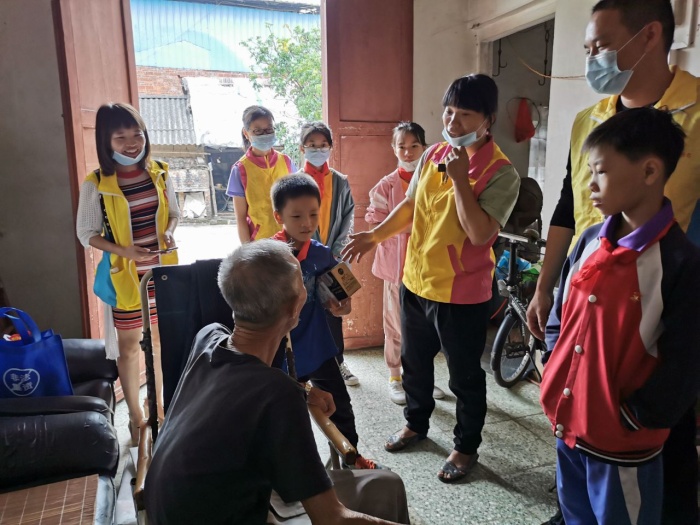 是日上午9:00,義工組人員集中在下南村委?,F(xiàn)場分好工過后,各自帶著慰問品和清潔工具出發(fā)到下南村各個村社的孤寡老人家里。當孩子們送上慰問品和向老人親切的道聲:“爺爺好!奶奶好!”時,老人臉上露出甜甜的笑容,溫暖了老人的心。當看到老人家的住所衛(wèi)生需要打掃,義工們紛紛拿起清潔工具,除草、掃地、拖地、擦桌子、整理擺放物品等,把老人家住所打掃的整潔干凈,讓老人家住的更溫馨舒適。孩子們也非常積極,主動幫忙搞清潔,做一些力所能及的事情。