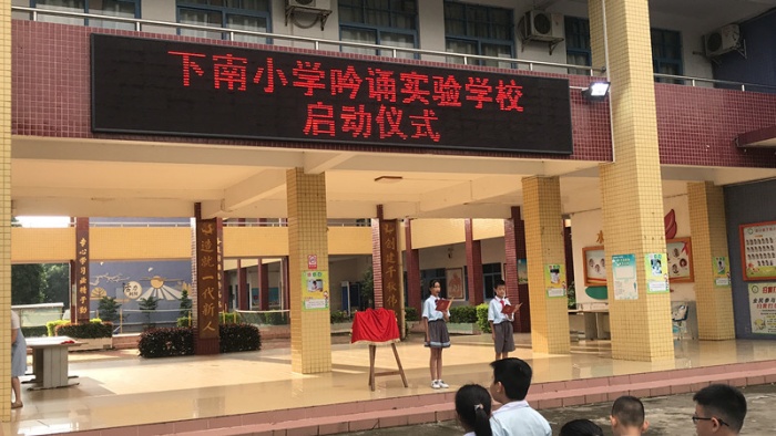 港口鎮(zhèn)下南小學在申報吟誦實驗校之前,已經(jīng)開展國學經(jīng)典誦讀活動,吟誦實驗校的啟動,為學校吟誦教學工作的開展錦上添花,相信在吟誦教學法專委會的領導下,下南小學的吟誦教學工作會做得越來越好。