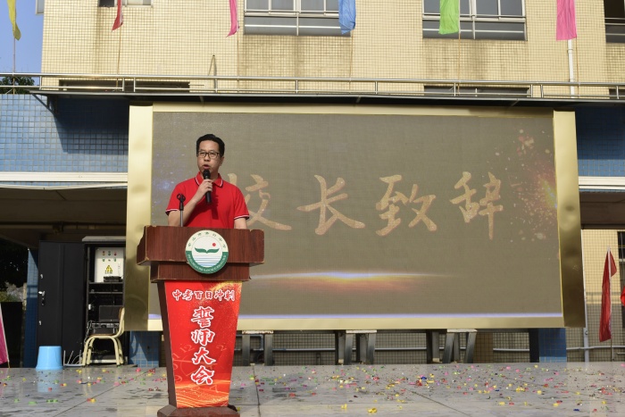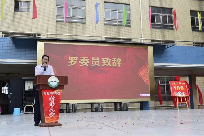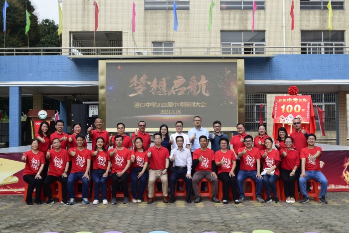 中考,是對學識、體力、心理素質(zhì)的考驗;是大浪淘沙、優(yōu)勝劣汰的選拔;是更上一層樓,會當凌絕頂?shù)母邏?。今天,距離2021年中考僅剩一百天,為了強化學生們的拼搏意識,激發(fā)學生們刻苦學習的斗志,2021年3月18日,中山市港口中學隆重舉行中考百日誓師大會。港口鎮(zhèn)黨委委員羅希京、港口鎮(zhèn)教體文旅局局長冼偉明、副局長劉長路、副局長吳君嫦、港口鎮(zhèn)教育體育事務中心主任劉憲軍、副主任張育文以及港口中學全體行政參加了本次大會。