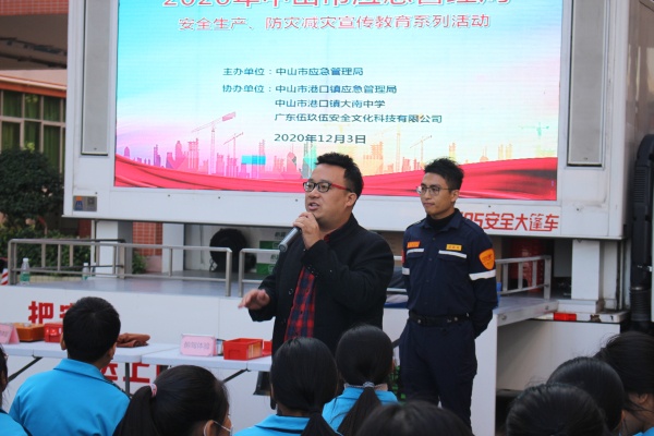 為進(jìn)一步加強(qiáng)校園安全工作,營造安全的校園環(huán)境,12月3日下午中山市應(yīng)急管理局志愿者宣講團(tuán)走進(jìn)大南中學(xué),開展了以“安全生產(chǎn)、防災(zāi)減災(zāi)”為主題的宣傳教育系列安全大篷車進(jìn)校園活動(dòng)。
