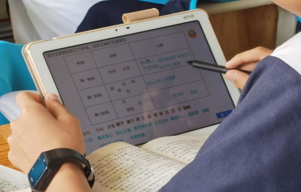 本次活動(dòng)由初一年級(jí)何凱賢老師主講莫頓·亨特的《走一步,再走一步》。何凱賢老師以自主檢測(cè),檢查預(yù)習(xí)、快速默讀,圈點(diǎn)勾畫、自主默讀,梳理情節(jié)、自主精讀,把握心理、自主探究,領(lǐng)悟主旨為教學(xué)思路,熟練地運(yùn)用了讀書郎智慧課堂設(shè)備進(jìn)行授課。課堂上學(xué)生人手一部讀書郎平板電腦,登錄進(jìn)入何老師的課堂,平板電腦的畫面便與講臺(tái)上一體機(jī)的畫面同步,坐后排的同學(xué)也能通過(guò)平板把PPT的內(nèi)容看得清清楚楚。
