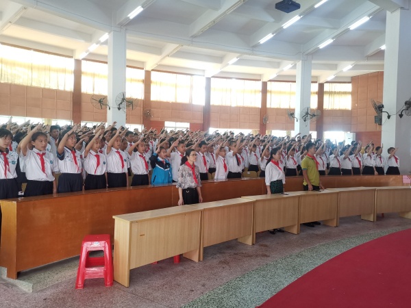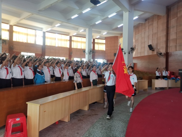 為慶祝中國少年先鋒隊建隊71周年,深入學習貫徹習近平總書記關于少年兒童和少先隊工作的重要論述,激勵全體少先隊員牢記初心使命,始終聽黨的話、跟黨走,夯實中學團隊一體化建設工作。2020年10月12日上午,港口鎮(zhèn)大南中學在學校階梯室舉行主題為“我是光榮的少先隊員”的初一級少先隊建隊儀式。儀式由葉怡菲老師主持,學校副校長、少工委副主任廖建紅,德育處副主任吳權明以及初一級全體師生參加了建隊儀式。