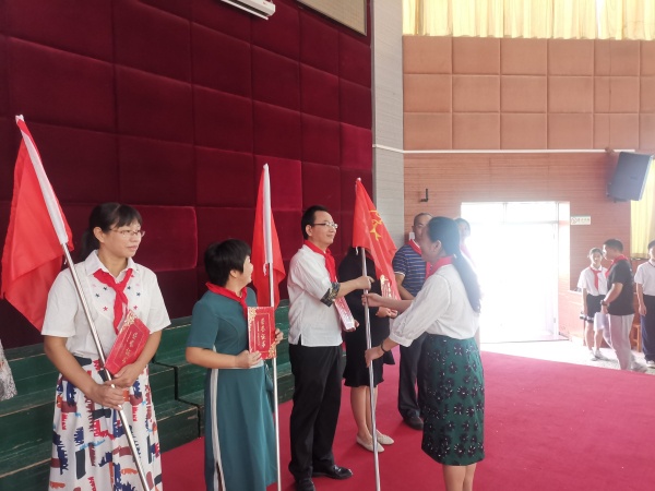 接下來,根據(jù)少先隊組織建設的有關規(guī)定,大隊輔導員周嘉杰老師宣讀了初一級建隊決定,公布了所聘任的中隊輔導員名單。學校少工委副主任廖建紅親自為各中隊輔導員授中隊旗與頒發(fā)聘書。八個中隊輔導員老師接過中隊旗和聘書后,紛紛表示增強了使命感,感受到學校領導對少先隊中隊輔導員老師的殷切期望。